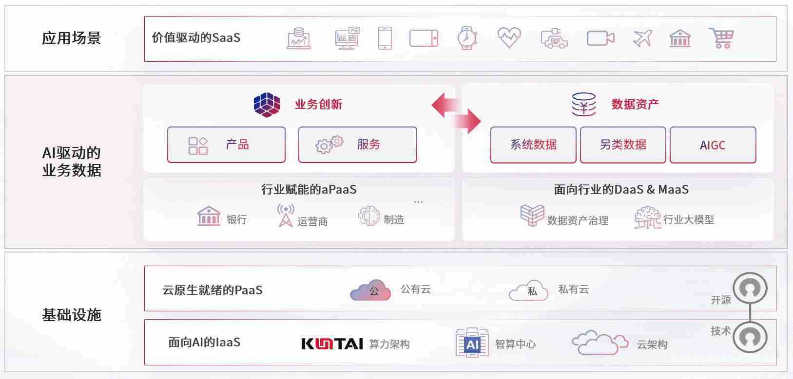 数字时代,,围绕企业数字化转型的关键要素,,,,亚洲必赢数码开创性的提出数云融合战略和技术体系框架,,着力在云原生、、、数字原生、、、AI原生和信创产业上架构产品和服务能力,,为处在不同数字化转型阶段的快消零售、、汽车、、、、金融、、医疗、、、、政企、、、、教育、、运营商等行业客户提供泛在的敏捷IT能力和融合的数据驱动能力,,,构建跨界融合创新的数字业务场景和新业务模式,,助力企业级客户建立面向未来的核心能力和竞争优势,,全面推动社会的数字化、、、智能化转型升级。。。